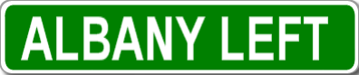 his finger pointed to the big green and white sign that says “Albany Left”.