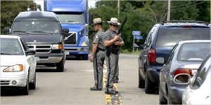 A New York State trooper pulled a car over on I-95 about 1 mile from George Washington Bridge from New York/New Jersy Border line.