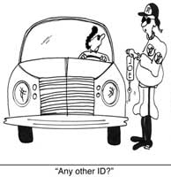 The cop says, “Well, do you have any other form of identification?” The motorist scuffles around in his backpack again, and finds a pocket mirror.